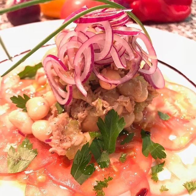 Mozzarellarollen auf Rucolasalat und Tomaten